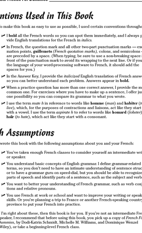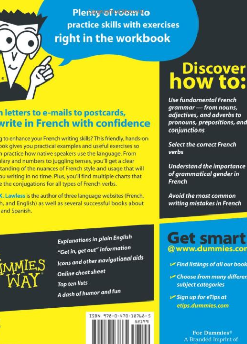 Part of the classic “For Dummies” series of books, this guide was written by Laura K. Lawless, who also runs the Lawless French website. There are grammar lessons and practice exercises with an answer key. It spends a lot of time reviewing the fundamentals, with plenty of explanation in English, so it might be a good choice for an upper-beginner or lower-intermediate level learner who needs a lot of guidance along the way.